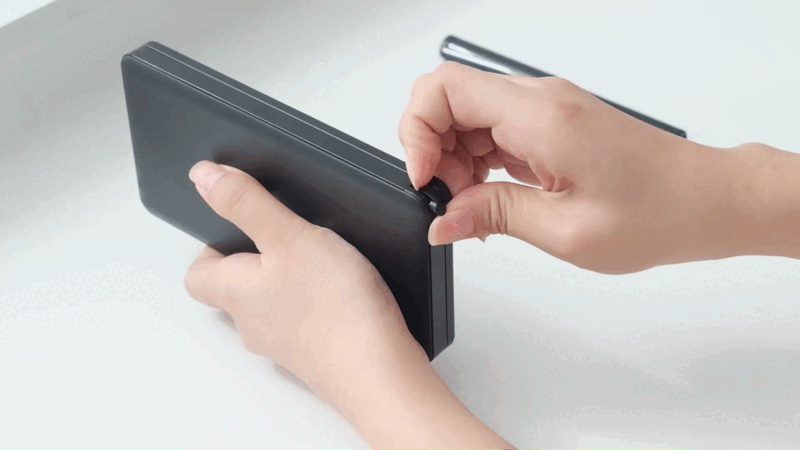 The pen is built into the lower left corner of the calculator, and you can slide it out. Please note: To prevent the pen from falling, the calculator pen is designed to be a little tight when you first take it out, so please feel free to use it.