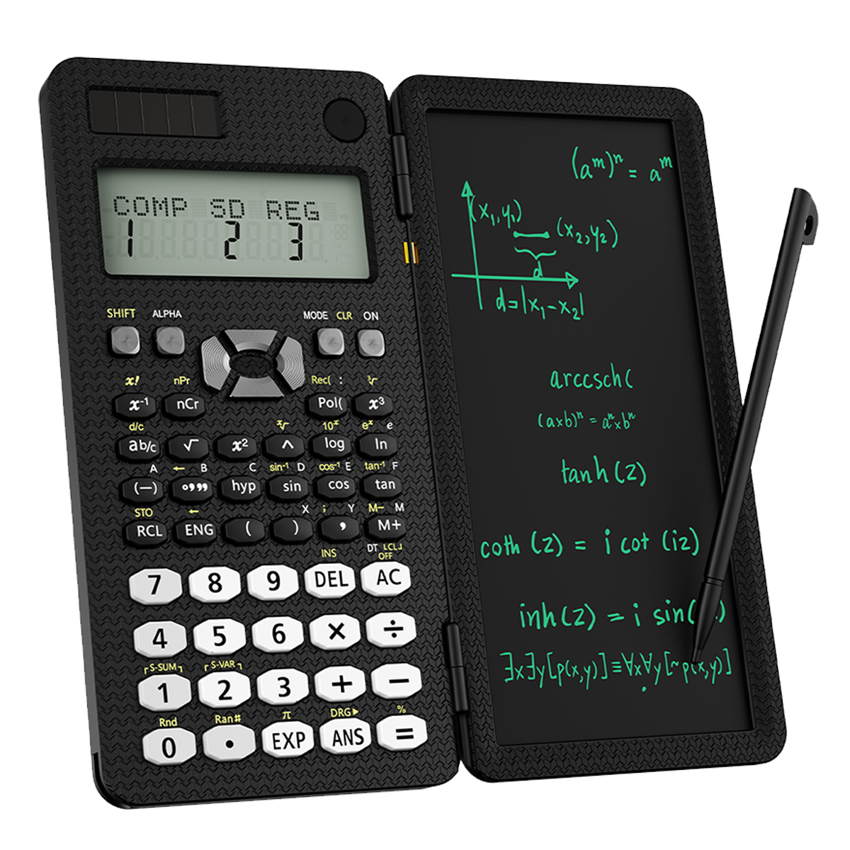 Scientific Calculator for School with Notepad, Middle and High School Supplies for Students, 82 MS Foldable 2-Line Display Science Calculator with Writing Tablet, Solar and Battery Powered