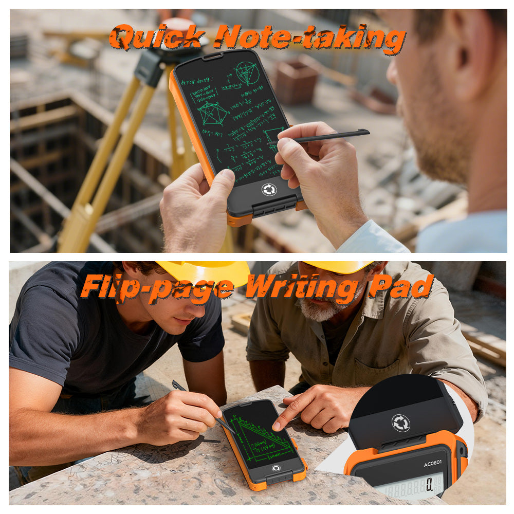 * Construction Calculator with 6 inch Flip-page Writing Pad: Quick note-taking without paper, making it both eco-friendly and convenient. The durable, phone-grade TPU material protects your calculator from drops and harsh construction environments.
